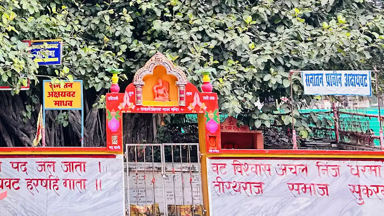 Triveni Sangam The divine confluence of three sacred rivers - the heart of Prayagraj's spiritual power. Rivers: Ganga + Yamuna + Saraswati (invisible) Significance: Called "Tirthraj" (King of Pilgrimages) Triple purification power Mentioned in all Vedas Lord Brahma performed yajna Rituals Performed: Asthi Visarjan (ashes) Pind Daan Holy bath (Snan) Tarpan Access: By boat from Sangam Ghat Boat ride: 15-20 minutes to exact confluence point Read: Tale of Triveni Sangam → Akshayavat The "Immortal Banyan Tree" inside Allahabad Fort. Location: Allahabad Fort (Army controlled, limited access) Legend: Tree that grants imperishable (akshaya) merit. Mentioned in Ramayana and visited by Chinese pilgrim Xuanzang in 7th century. Significance: Pind offered here grants eternal liberation Represents undying nature of the soul Connected to cosmic tree Enquire to Visit → Sangam Ghat (Sangam nose) The main ghat which touches the 'Triveni Point' where all rivers meet. Facilities: Snan area without requirement of boat Pandit services Ritual material shops Changing rooms Rituals Performed: Sankalp ceremony Preparation for boat ritual Post-ritual prayers Best Time: Early morning (5-8 AM) for sunrise rituals Read about Sangam Ghat → Image of Bade Hanuman ji in Prayagraj- Magh Mela 2026 Prayagraj Scams Hanuman Mandir Unique lying Hanuman idol that rises during floods Location: Sangam area Visit during: Post-ritual darshan Enquire to Visit → Photo of Patalpuri Temple at Prayagraj Patalpuri Temple Underground temple inside Allahabad Fort Location: Fort complex Significance: Ancient meditation caves Enquire to Visit → Photo of Nagwasuki Temple at Prayagraj Nag Vasuki Temple Dedicated to serpent king Vasuki Location: Daraganj Significance: Nag Panchami celebrations Enquire to Visit → Photo of Alopidevi temple at prayagraj Alopi Devi Mandir One of 51 Shakti Peeths Location: Alopi Bagh Significance: Where Sita's fingers fell Enquire to Visit → Photo of Bharadwaj ji at Bharadwaj ashram at prayagraj Bharadwaj Ashram Sage Bharadwaj's hermitage Location: Colonelganj Significance: Where Lord Rama visited Enquire to Visit →
