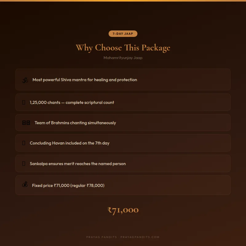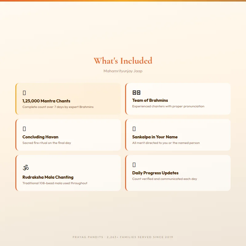 When we say this is the most complete form of Mahamrityunjay Jaap, every element of that claim is deliberate. Here is precisely what the package covers: