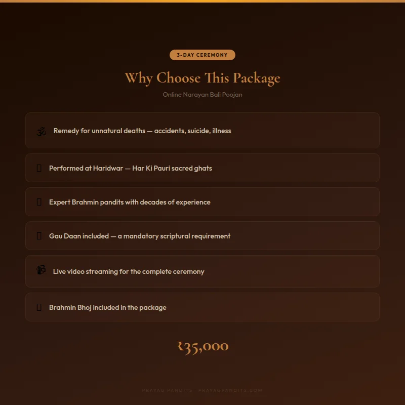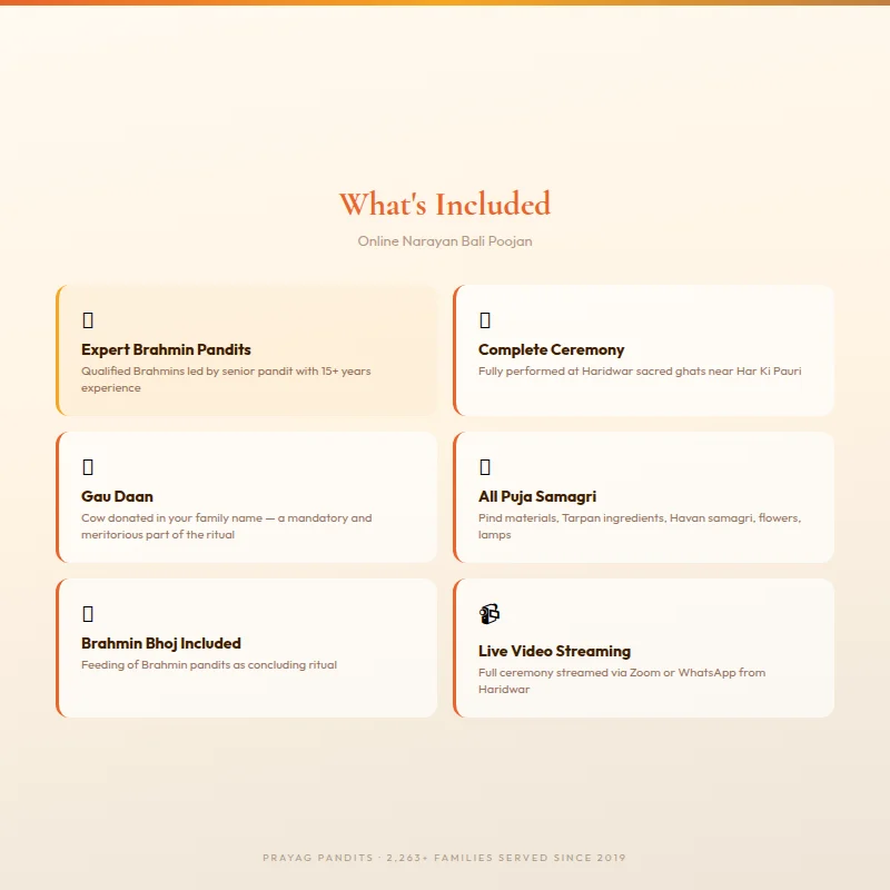 When you book the Online Narayan Bali Poojan in Haridwar at ₹35,000, here is everything that is covered: