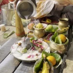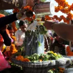 - Shiva Linga decoration — Bael (bilva) leaves, dhatura flowers, and other Shiva-favourite offerings arranged with care