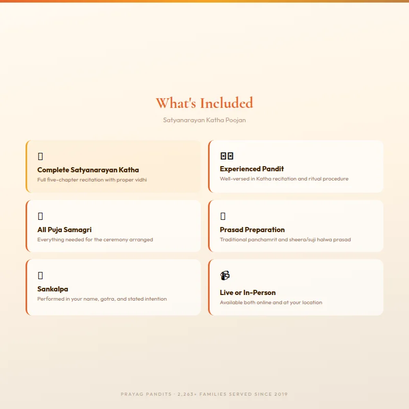 Affordable and authentic poojan services. We compared several providers before choosing Prayag Pandits and we made the right choice. The quality of service matched what was promised.